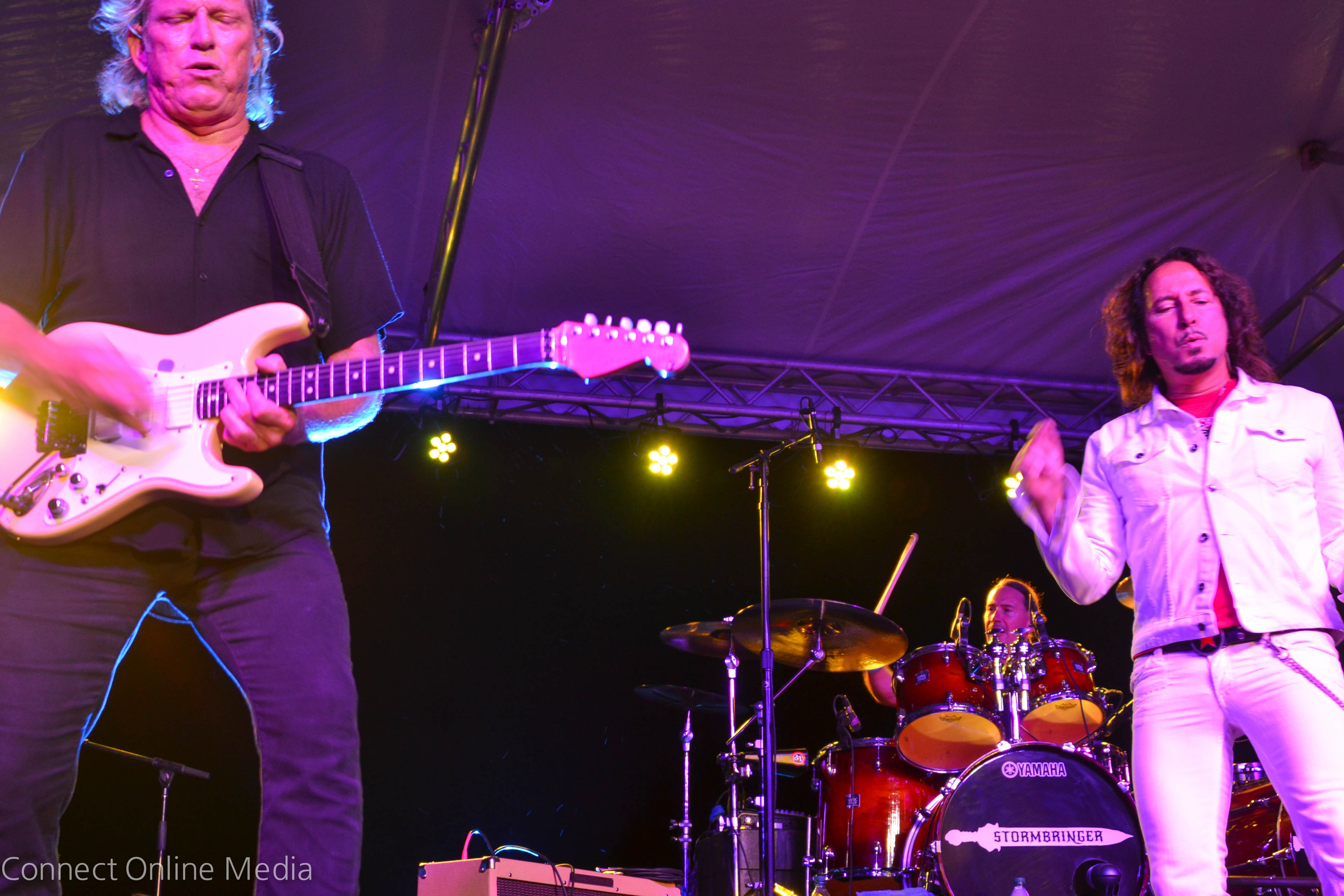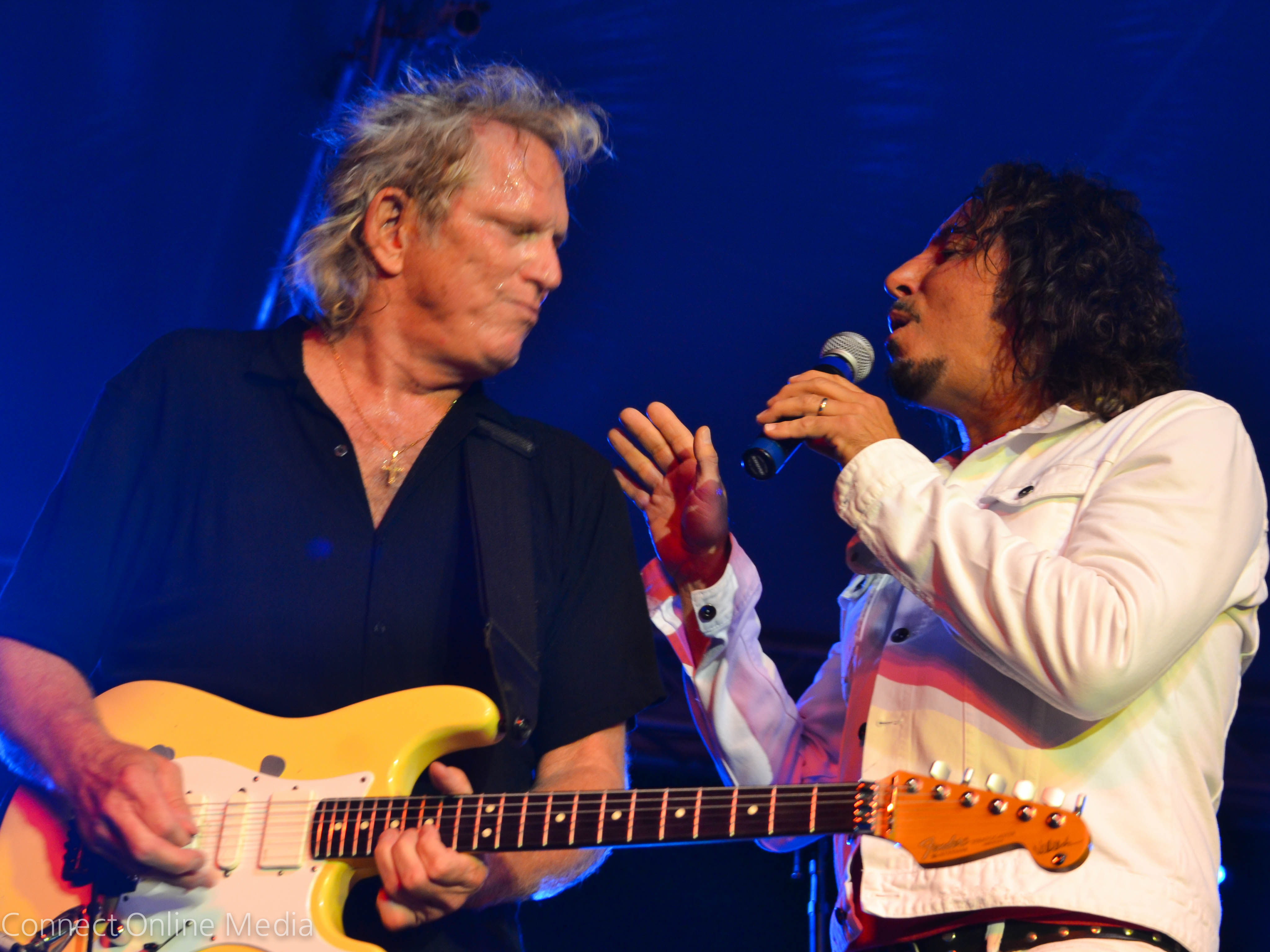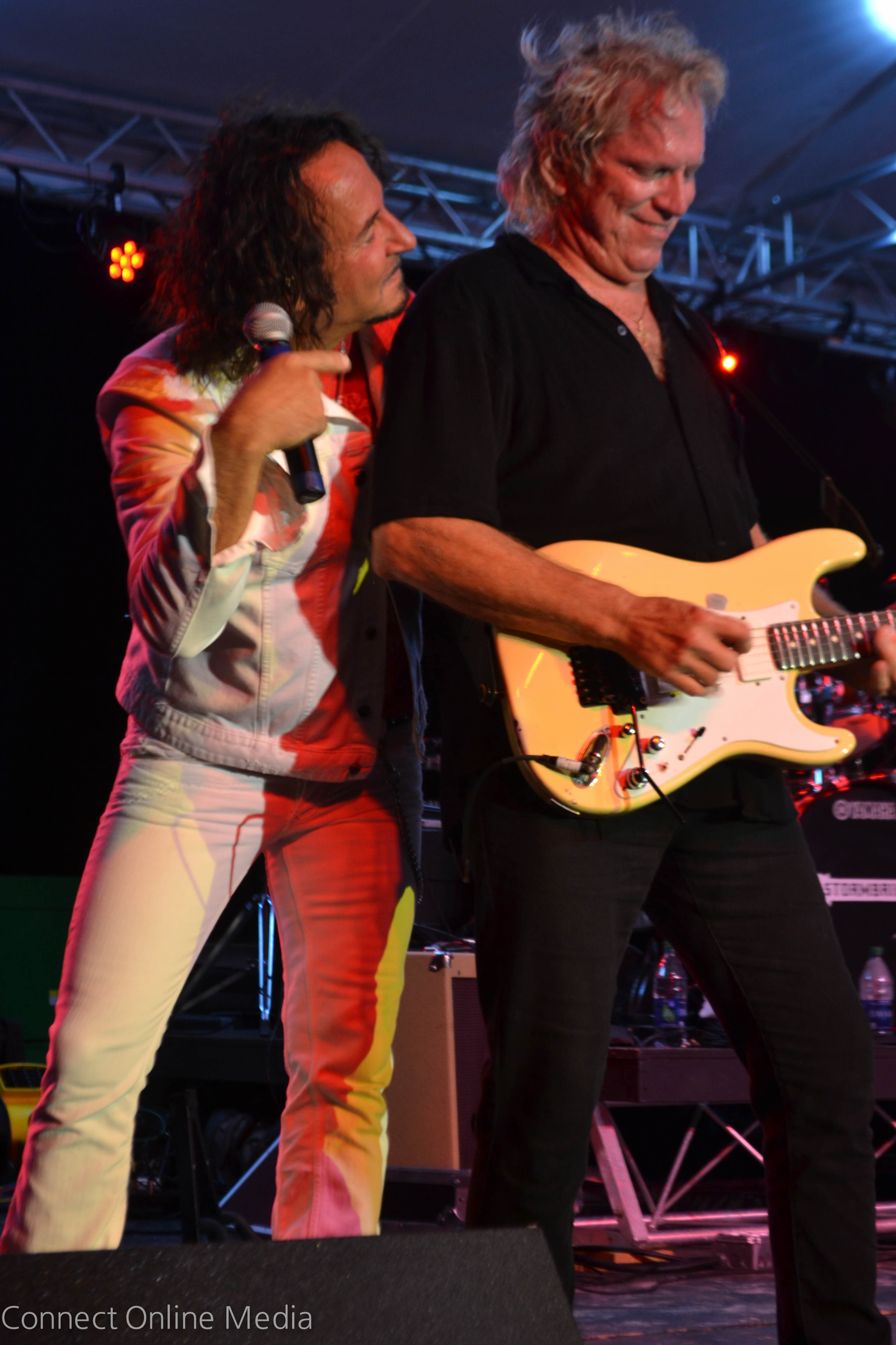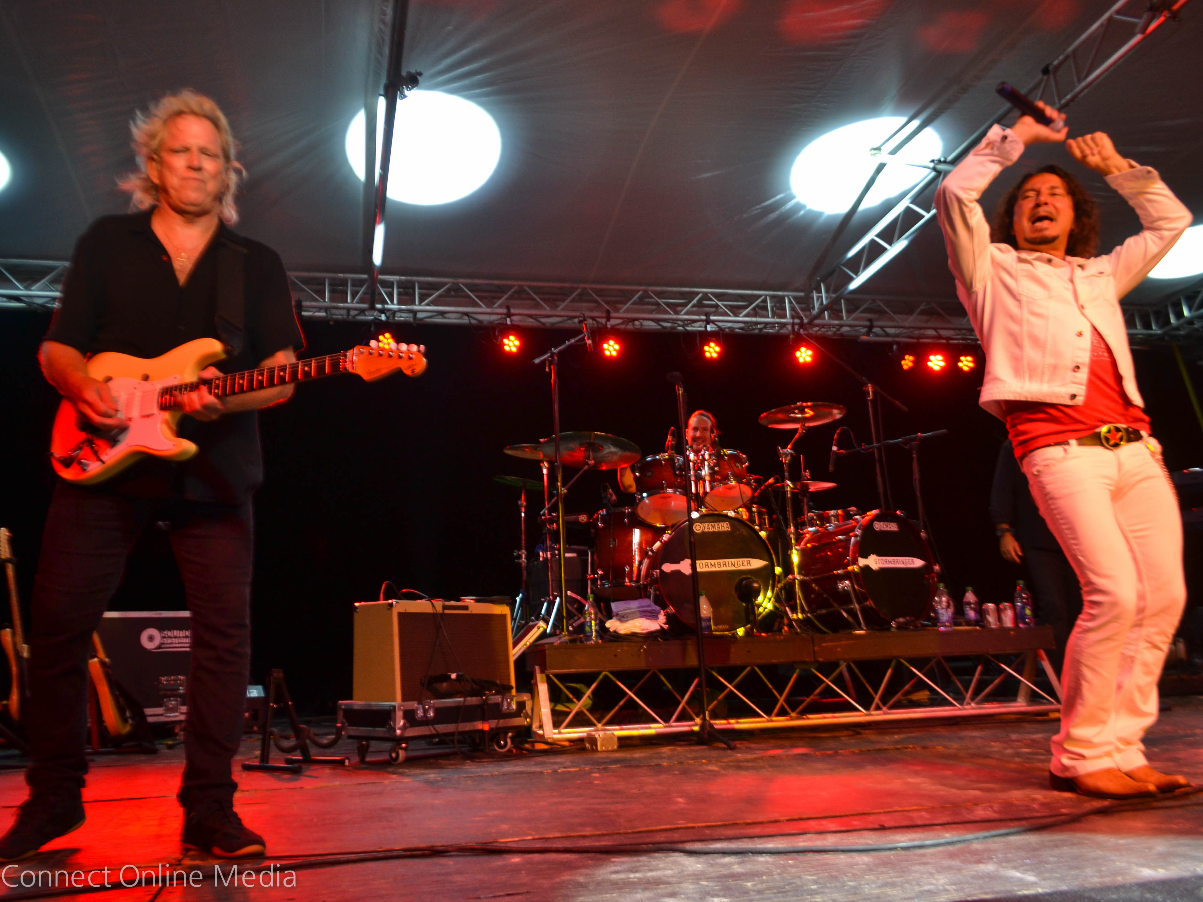 Indeed, there were smiles all around as radio hits instantly recognizable to people of a certain age (yours truly included) were belted out by the legendary artists, who were capably backed by local rockers Stormbringer.