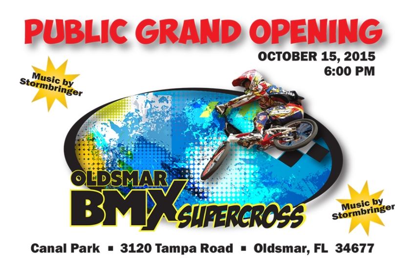 The grand opening for Oldsmar's BMX Supercross Track is scheduled for Thursday, Oct. 15 at 5:30 p.m.